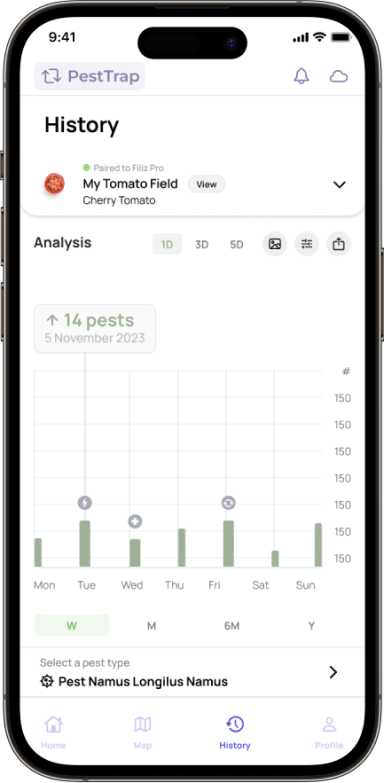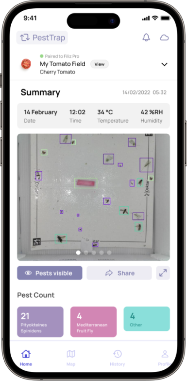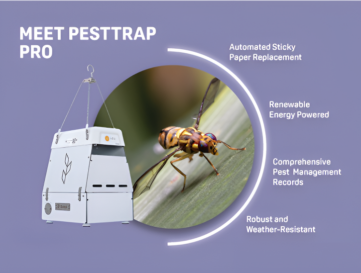 PestTrap is an IoT pest-tracking station that uses machine learning to identify and count pests in real-time. Equipped with a pheromone trap lure to attract insects, PestTrap optimizes crop yields and reduces the economic impact of pest-related crop damage. Its compact design makes it ideal for outdoor use in any weather condition, ensuring reliable pest tracking with uninterrupted data flow. Protect your field with the environmentally-friendly technology of PestTrap!